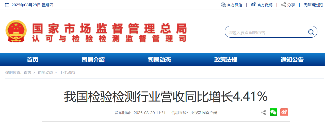 我國檢驗檢測行業營收同比增長4.41%